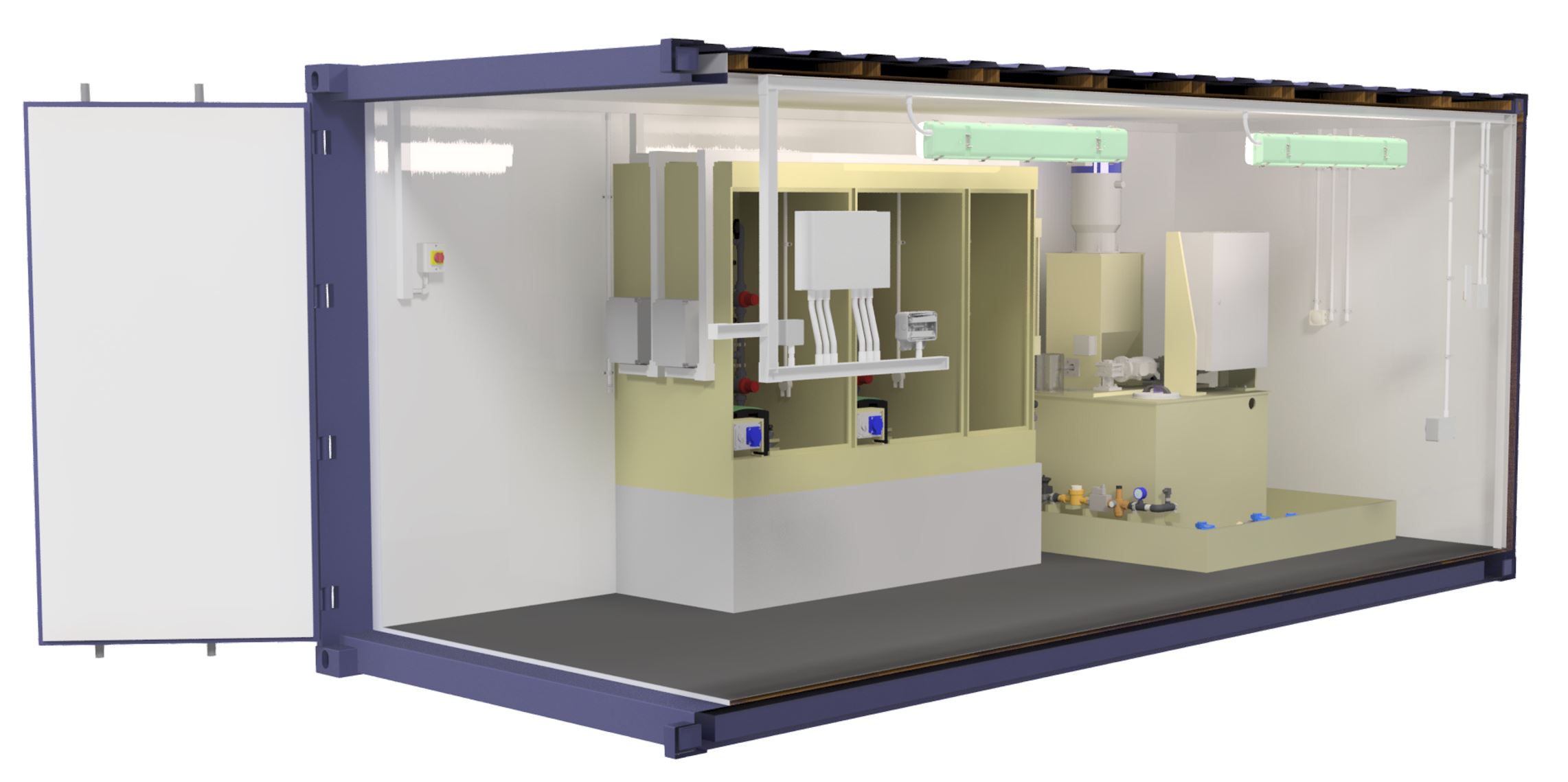 The AquaDose Polymer is a powder polymer make-up and dosing system for temporary and emergency applications, the system is packaged within a 20ft ISO container. Each container is insulated and plastic lined allowing the area to be easily cleaned and washed down if required. This system is an easy to setup ‘Plug & Play’ temporary dosing system with repair & routine maintenance being covered under the Aquazone Hire Agreement.